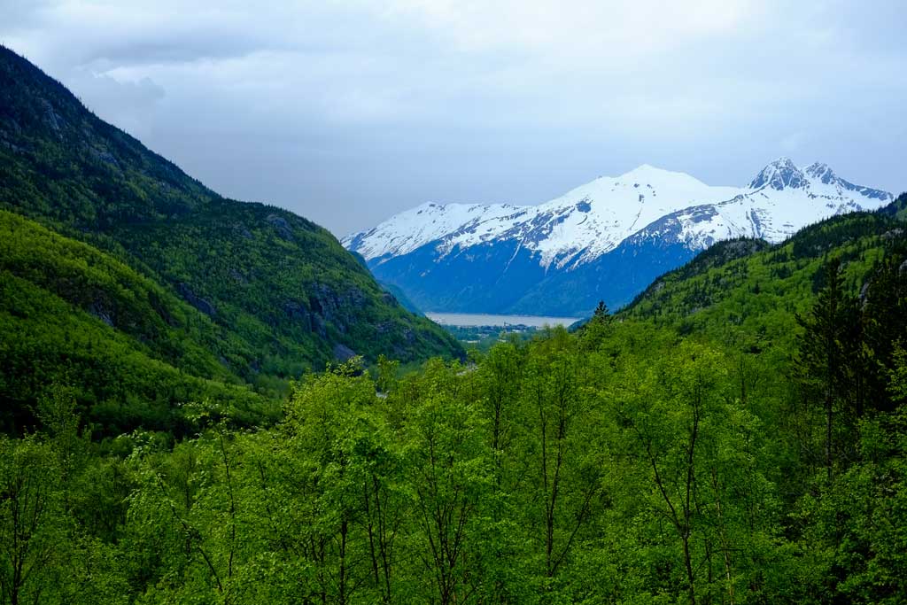Blick auf Skagway von der Plattform des Zuges aus